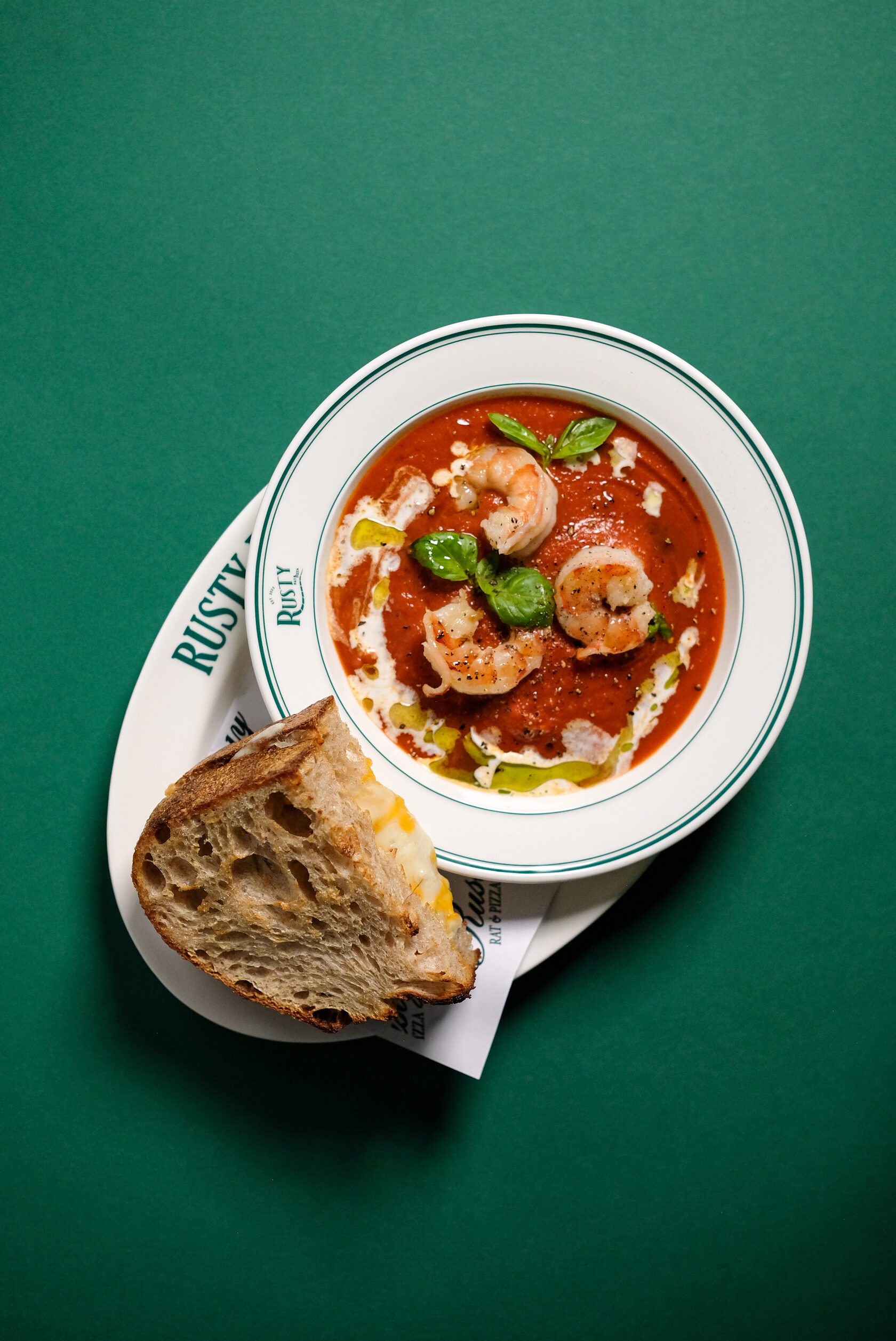 Cладкий томатный суп, сэндвич грильчиз