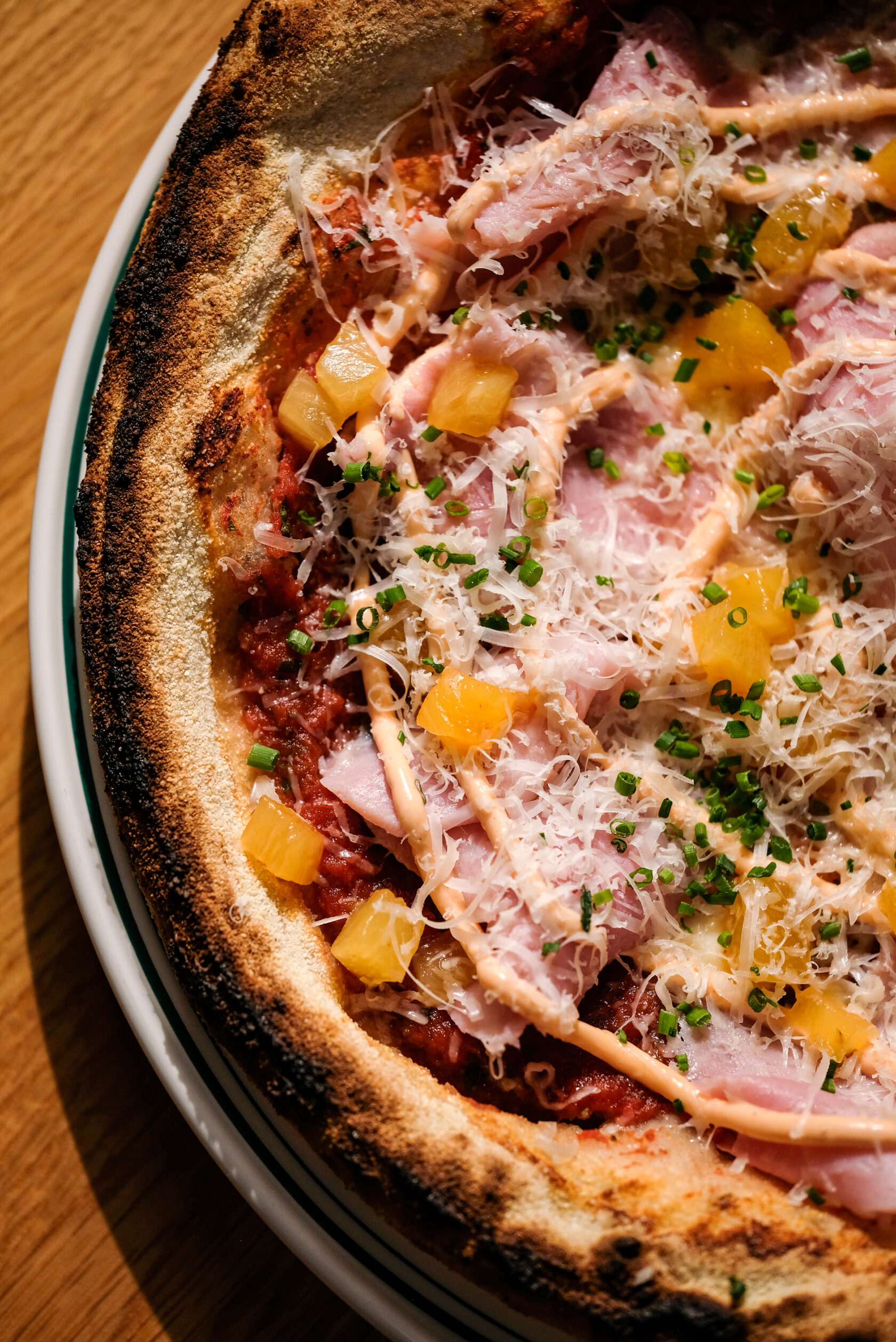 Ананас кимчи, тамбовский окорок, зеленый лук, красный лук, шпинат, зеленый перец чили