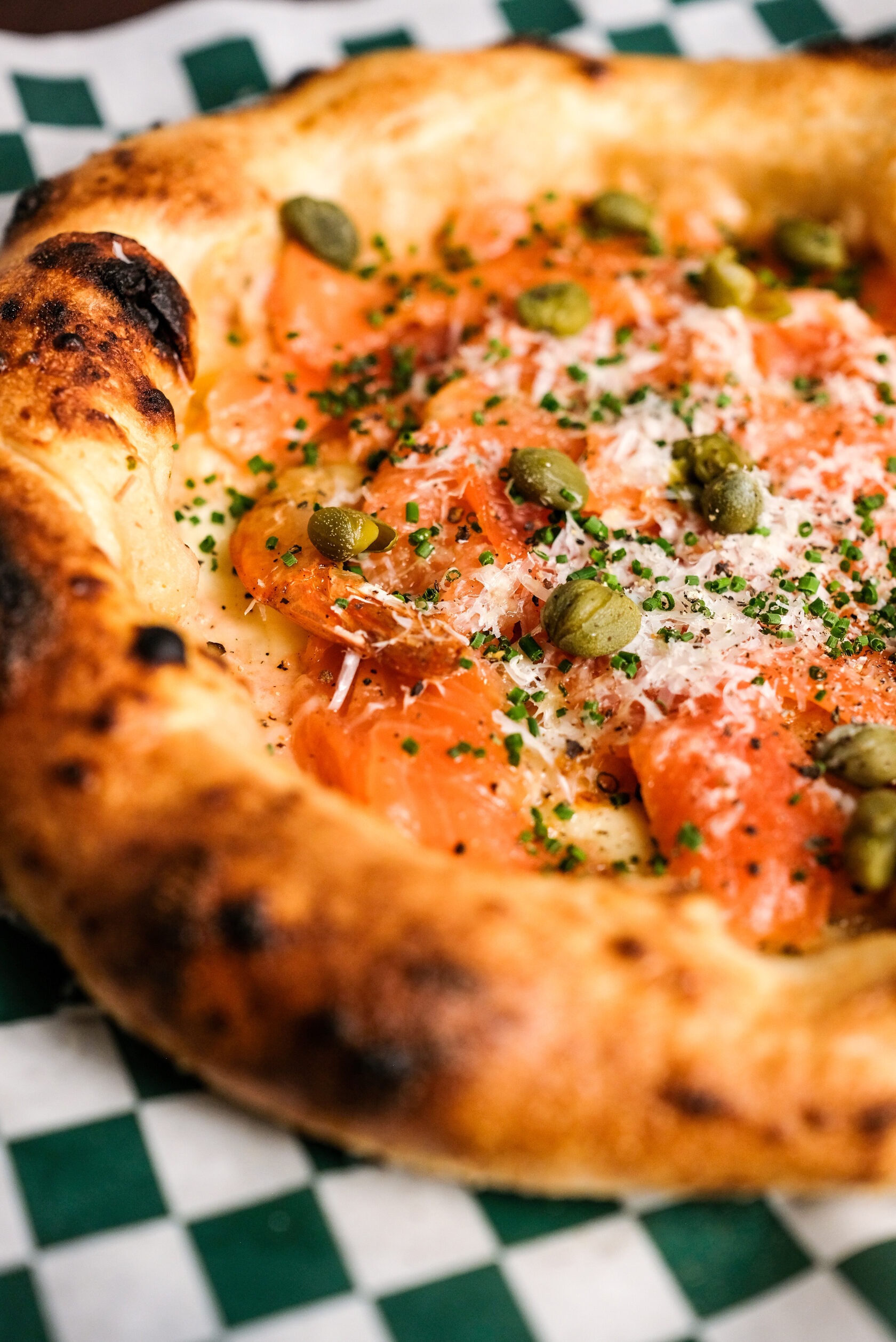 Креветки, чесночное масло, фокачча