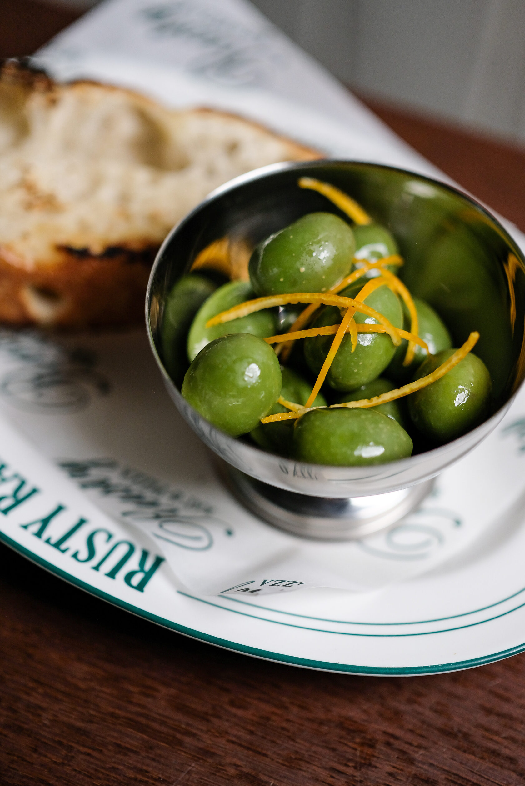 Оливки Ночеллара, апельсиновый маринад, фокачча