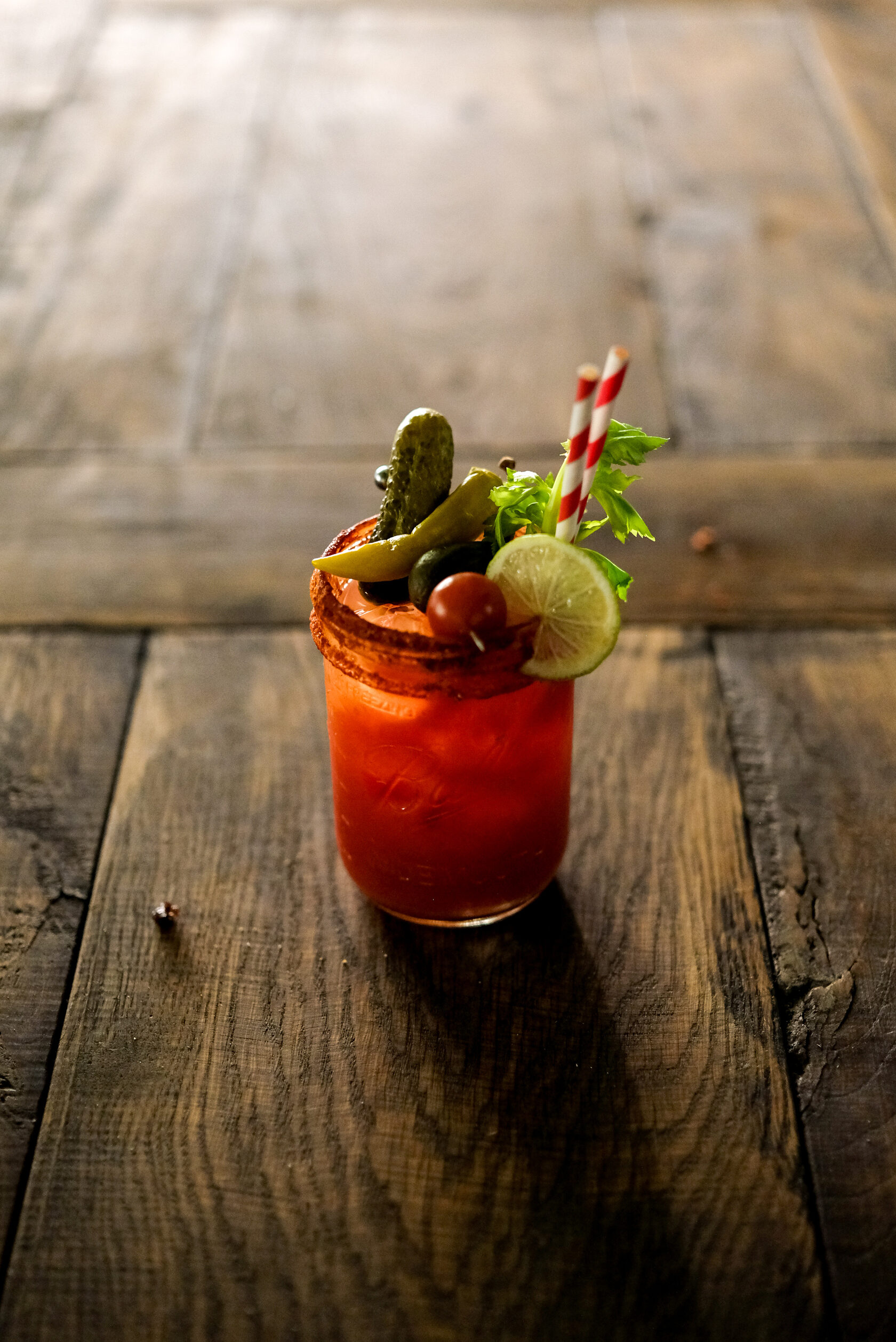 Водка, томатный сок, лайм, яблочный уксус, чеснок, черный перец, паприка, соус Вустершир