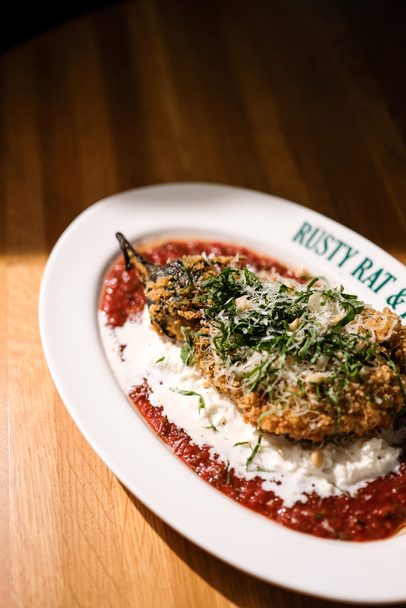 Хрустящий баклажан, маринара, страчателла, пармезан
