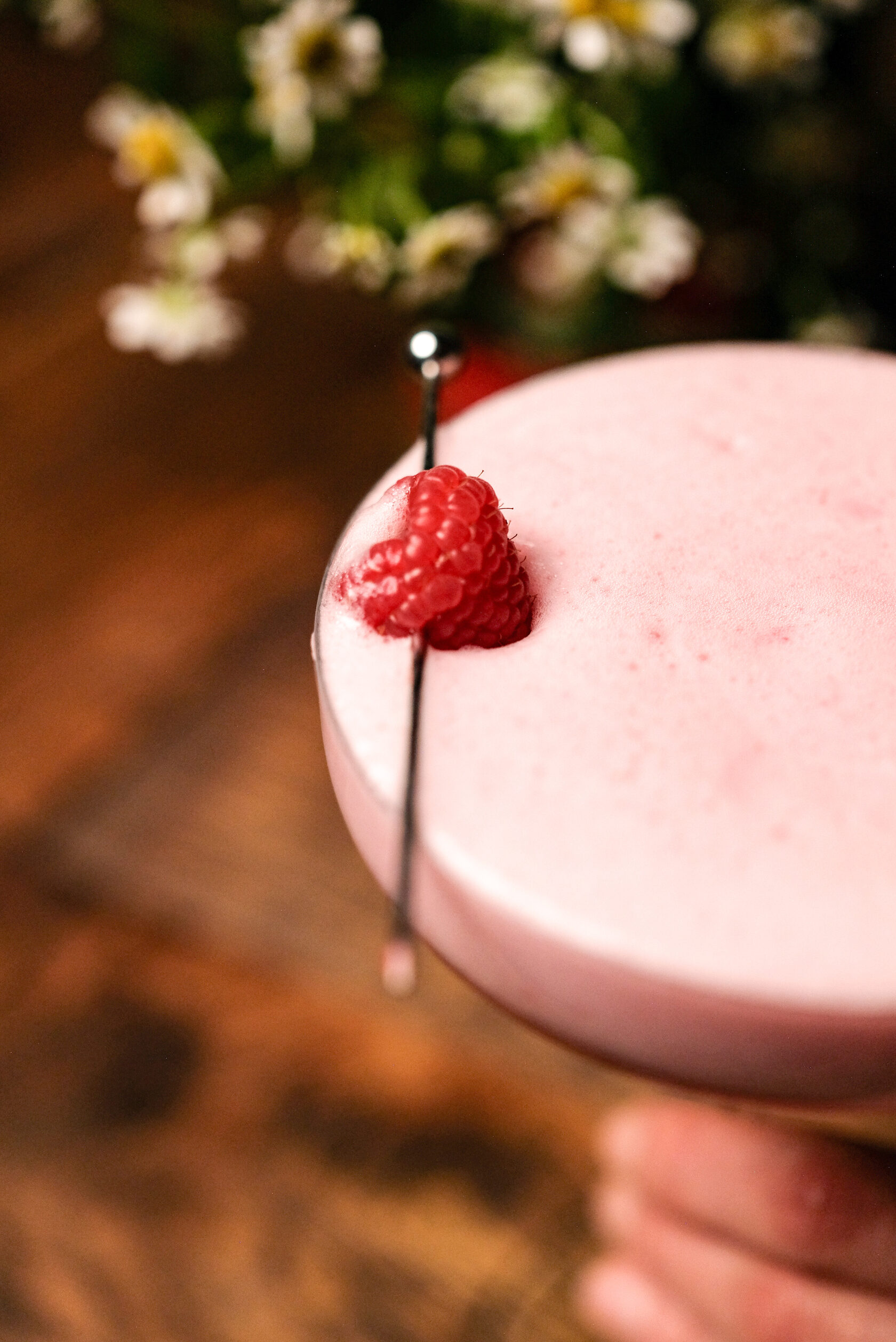 Джин, малина, лимон, белок
