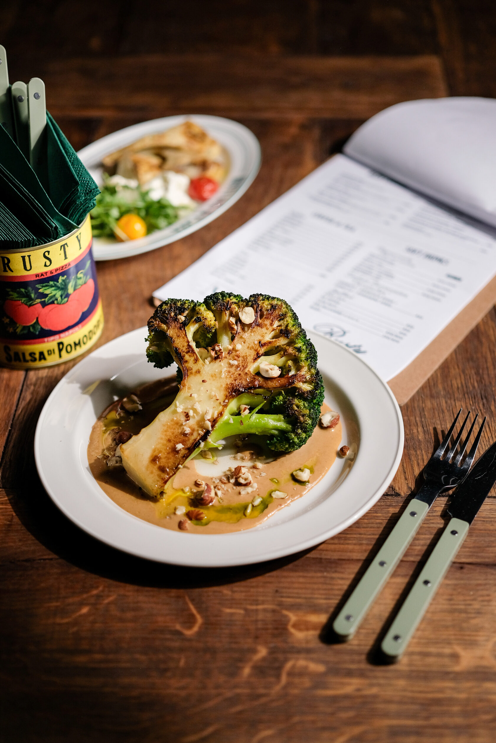 Обожженая брокколи, ореховый соус