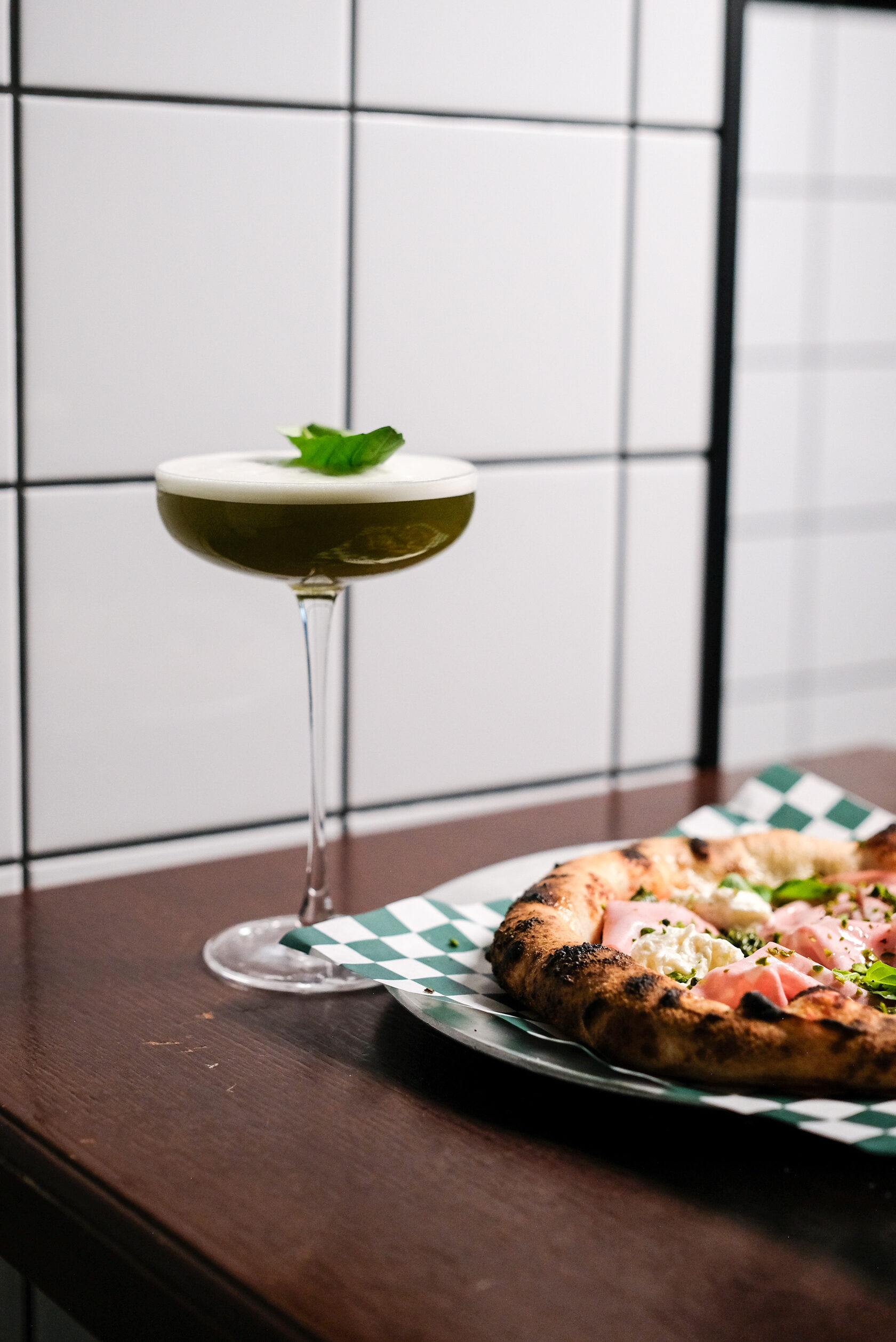 Джин на базилике, сухой вермут, дыня, лимон, белок