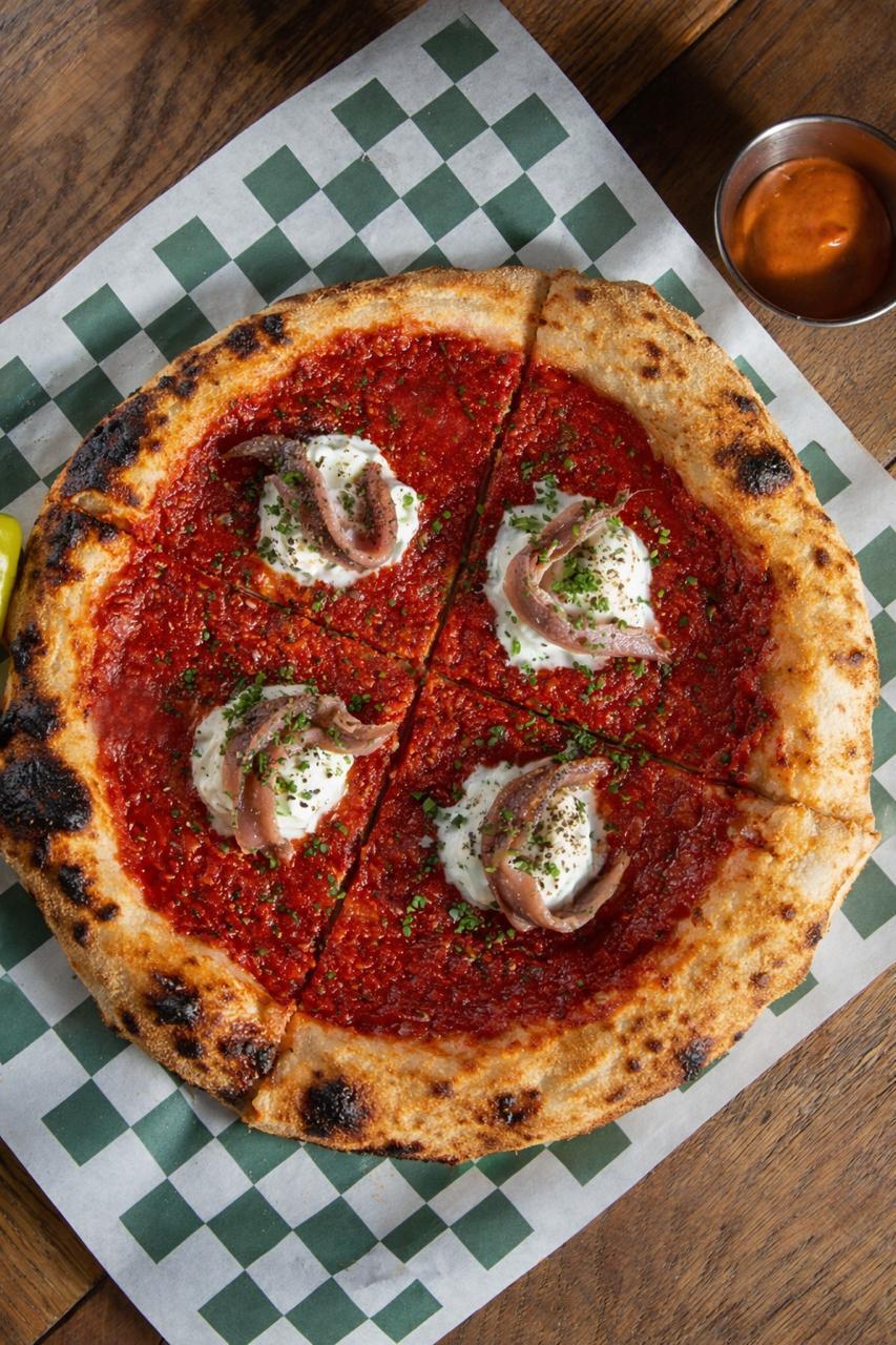 Томатная основа, страчателла, анчоусы
